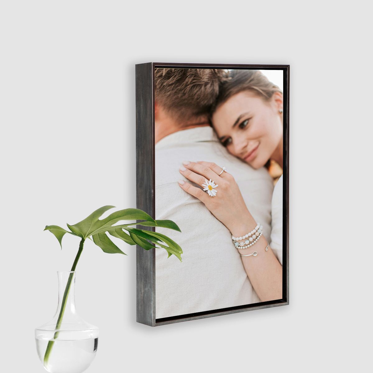 Framed Canvases are mounted with a â…›" space between the print and frame, creating a floating effect. Choose from various moulding styles, including Aged Metallic, Classic, and Wood, to complement the artwork.